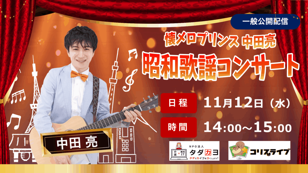 11/12(水)無料コンサート開催決定!! 2025 10/31 お知らせ コリスライブ主催「昭和歌謡コンサート」の無料開催が11月も決定いたしました!今回はタダカヨ様とのコラボ開催で参加費は無料です!下記ページよりお申し込みください! お申し込みページ お知らせ Please シェア!! URLをコピーしました! URLをコピーしました! ラヴィーレ神戸垂水のホームだよりに掲載されました! 関連記事 お手軽ハンドメイドコリスボックス】新作を公開しました! 2025年10月2日 【ハンドメイドキット】新作を公開しました! 2025年10月2日 10/24(金)無料コンサート開催決定!! 2025年9月28日 【お手軽ハンドメイドコリスボックス】新作を公開しました! 2025年9月1日 【ハンドメイドキット】新作を公開しました! 2025年9月1日 【お手軽ハンドメイドコリスボックス】新作を公開しました! 2025年8月1日 【ハンドメイドキット】新作を公開しました! 2025年8月1日 【ハンドメイドキット】新作を公開しました! 2025年7月1日